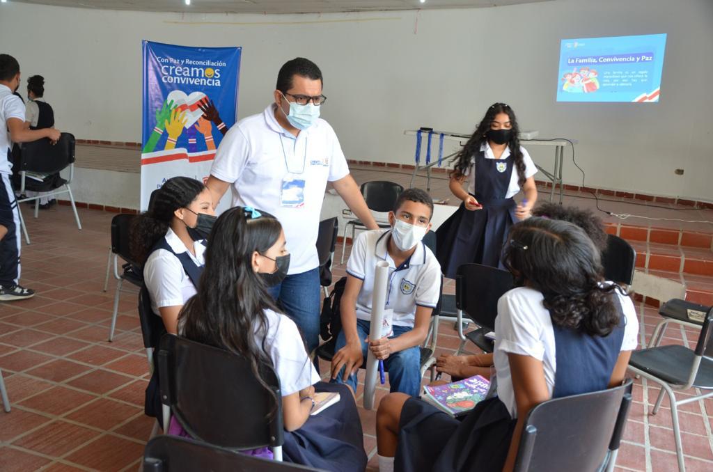 Palmar de Varela , 17 de abril de 2022. Gobernación del Atlántico. 1.100 jóvenes de instituciones educativas de zonas con alta vulnerabilidad de los municipios de Soledad, Palmar de Varela y Santo Tomás se benefician con la estrategia para la promoción de la convivencia ciudadana, la prevención y resolución asertiva de conflictos desde el sistema familiar.