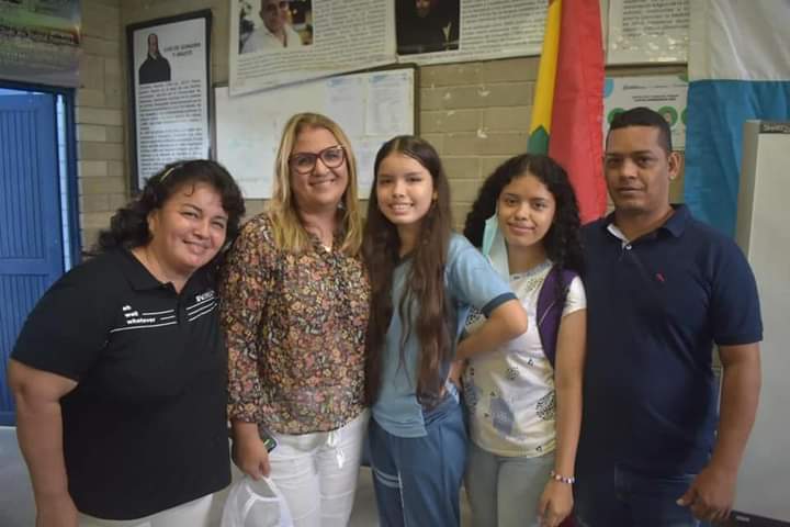 La joven estudiante de la IED San Gabriel tuvo un encuentro con el alcalde Jaime Pumarejo y la secretaria de Educación, Bibiana Rincón, quienes le hicieron entrega de un equipo de cómputo para complementar su proceso de preparación.