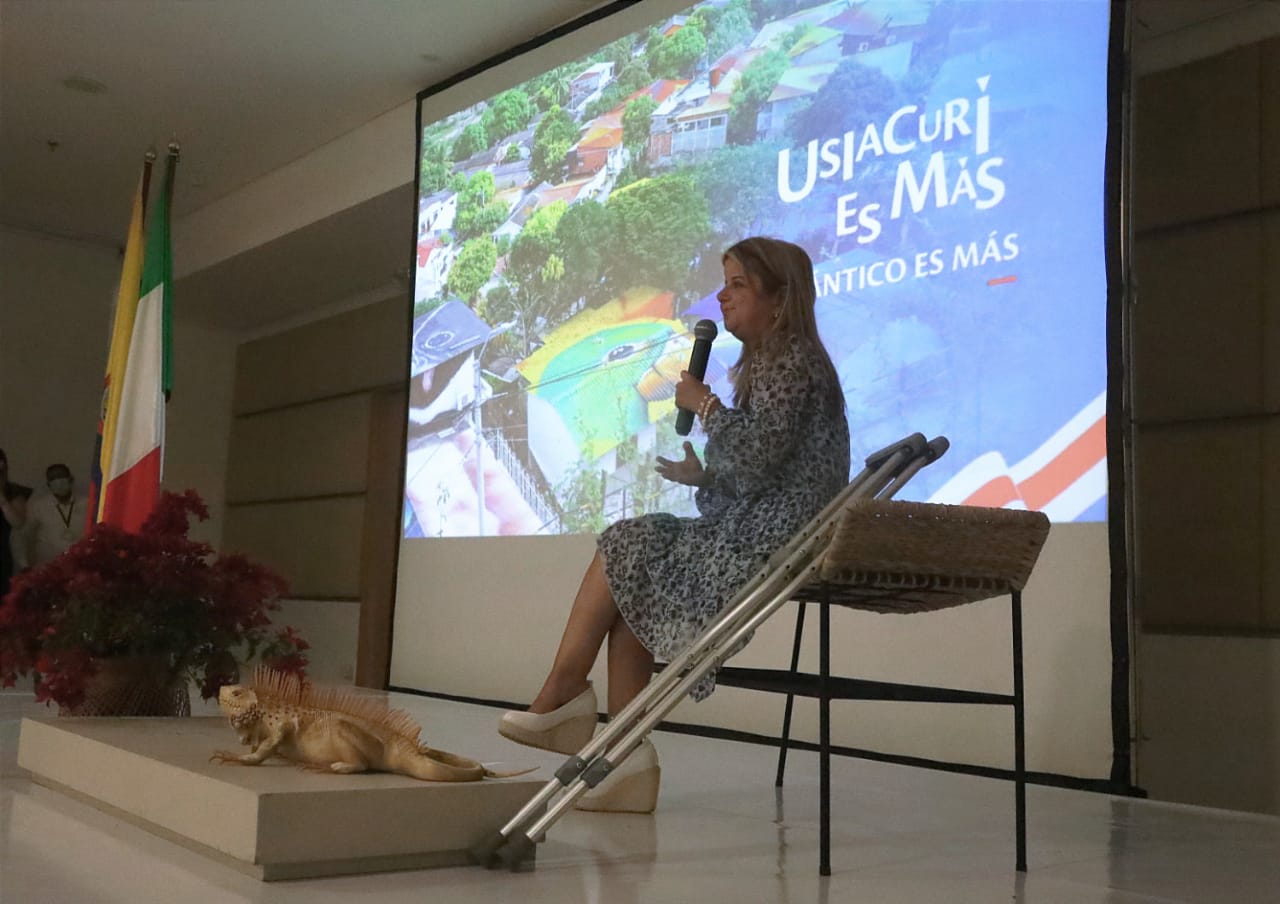 Durante su intervención, la mandataria destacó las acciones de la estrategia dirigidas a reactivar la economía y aseguró que el Atlántico y Barranquilla serán el epicentro de las energías renovables, uno de los tres sectores que se están promocionando para atraer más inversión y generar dinamismo económico para el departamento.