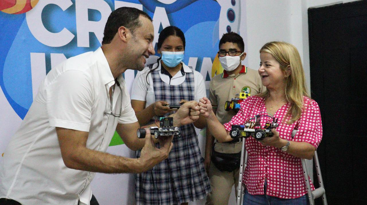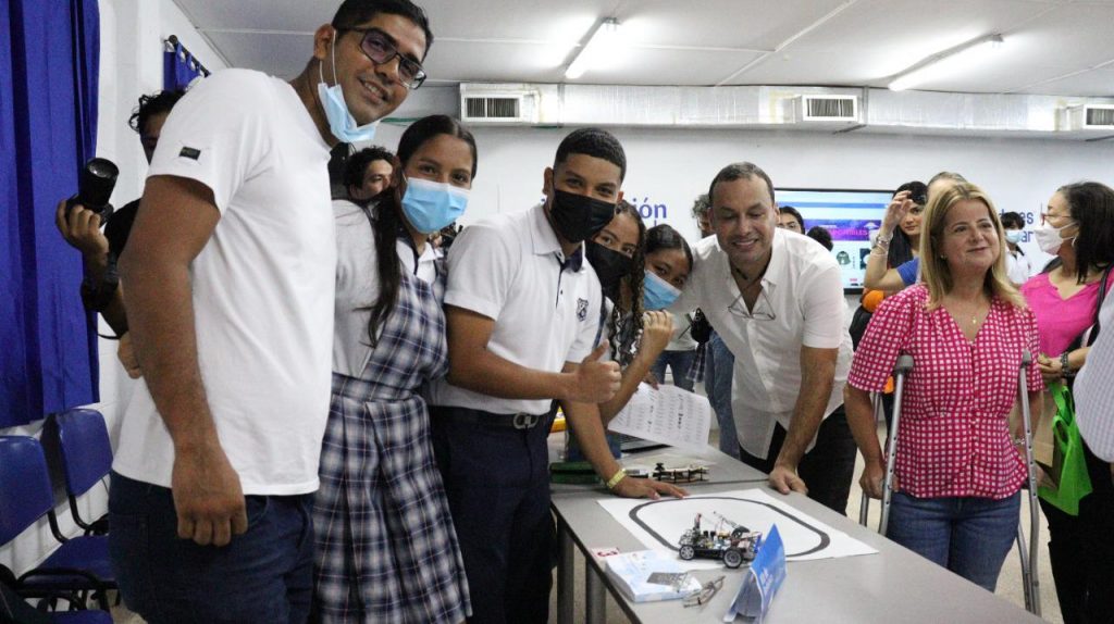 La Gobernadora del Atlántico, Elsa Noguera, entregó a los estudiantes de la Institución Educativa Francisco de Paula Santander de Galapa el primer laboratorio de robótica, el cual beneficiará el crecimiento académico de la institución.
