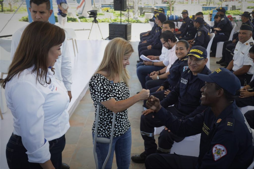«Con una inversión de más de 5.300 millones de pesos, hemos dotado 10 de nuestros cuerpos de Bomberos del Atlántico. Lo lindo de este proceso es que fueron ellos los que escogieron qué requerían, como equipos de protección personal, uniformes, botas, guantes, así como también equipos de comunicación y transporte. Algunos tenían equipos o maquinarias que estaban funcionando, pero que requerían mantenimiento, y les realizamos dicho mantenimiento. De tal forma, que entre todos formen un gran sistema que no solo nos sirva para atender incendios, sino que también se pueda hacer toda la labor de gestión y prevención de desastres», indicó la mandataria.