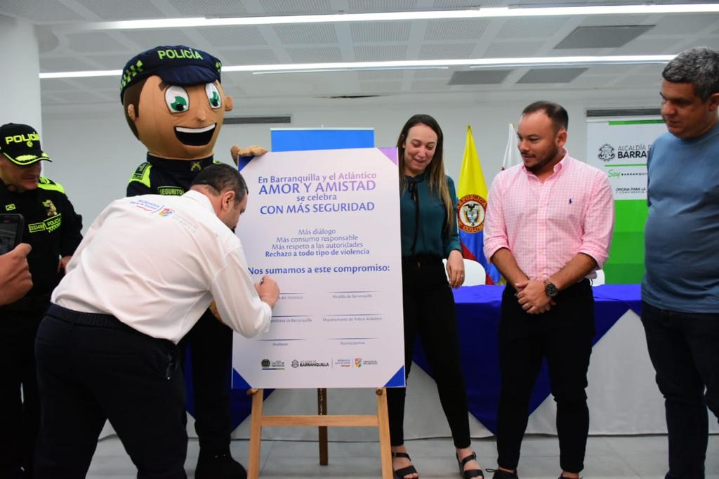Barranquilla, septiembre 15 de 2022. Gobernación del Atlántico. La Gobernación del Atlántico, la Alcaldía de Barranquilla, la Policía Nacional y representantes de Asobares y Asonocturnos firmaron este jueves un compromiso para garantizar la seguridad en la celebración de Amor y Amistad este fin de semana.
