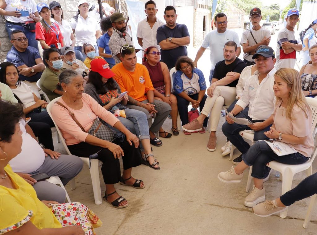 Puerto Colombia, septiembre 16 de 2022. Gobernación del Atlántico. La gobernadora del Atlántico, Elsa Noguera, participó este viernes, en el barrio Vistamar de Puerto Colombia, en un encuentro con emprendedores para dialogar e intercambiar opiniones acerca de las expectativas y avances de la estrategia de intervención con color que va a transformar el municipio.
