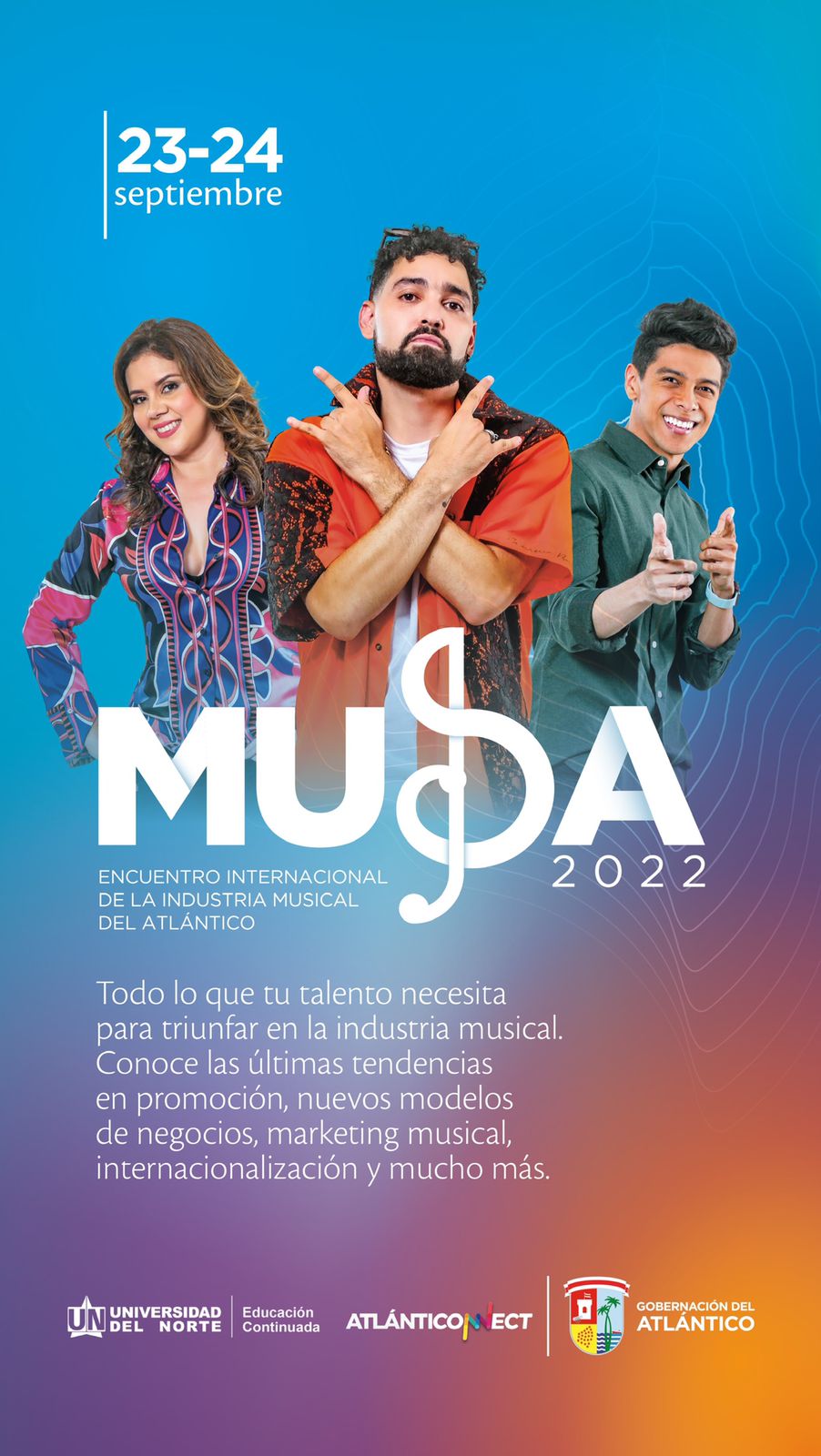 “En Musa, expertos discutirán retos actuales y de alto interés para los distintos actores de la industria musical del Atlántico. Además, contaremos con conferencistas internacionales y nacionales con el propósito de discutir desde distintas perspectivas las nuevas tendencias y herramientas disponibles para mejorar, promocionar y distribuir los distintos productos musicales”, agregó el secretario TIC del departamento.