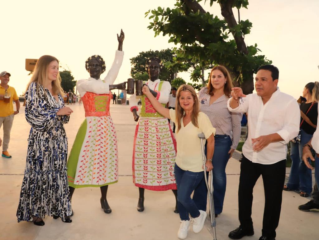 Puerto Colombia, octubre 12 de 2022. Gobernación del Atlántico. La gobernadora del Atlántico, Elsa Noguera, develó este martes en Puerto Colombia la cuarta escultura de ‘Los Inmigrantes’, que esta vez rinde homenaje a los alemanes, y se suma a las piezas que representan a las familias de asiáticos, franceses e italianos que entraron al departamento a través del histórico muelle.