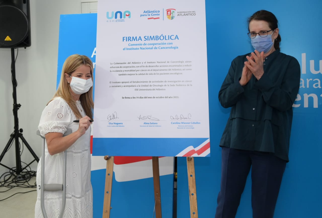 *La Gobernadora del Atlántico suscribió este viernes un convenio de cooperación con el Instituto Nacional de Cancerología para desarrollar acciones conjuntas que ayuden a reducir la incidencia y mortalidad por cáncer en niños y jóvenes del departamento.