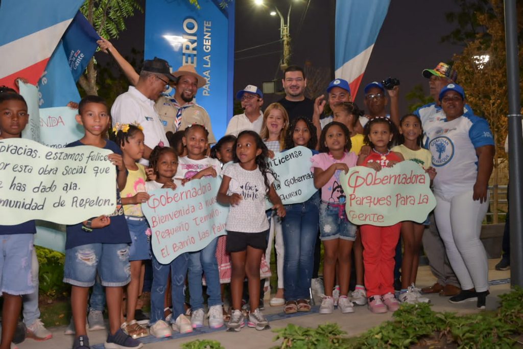 Repelón, enero 22 de 2023. Gobernación del Atlántico. Con una comunidad feliz que la recibió con aplausos, la gobernadora, Elsa Noguera, hizo entrega de dos nuevos parques recuperados en Repelón. Se trata del Parque Cementerio, en el barrio Las Palmas en la cabecera municipal, y la Plaza Parque Heinz Olivo Cabrera, en el corregimiento de Villa Rosa.